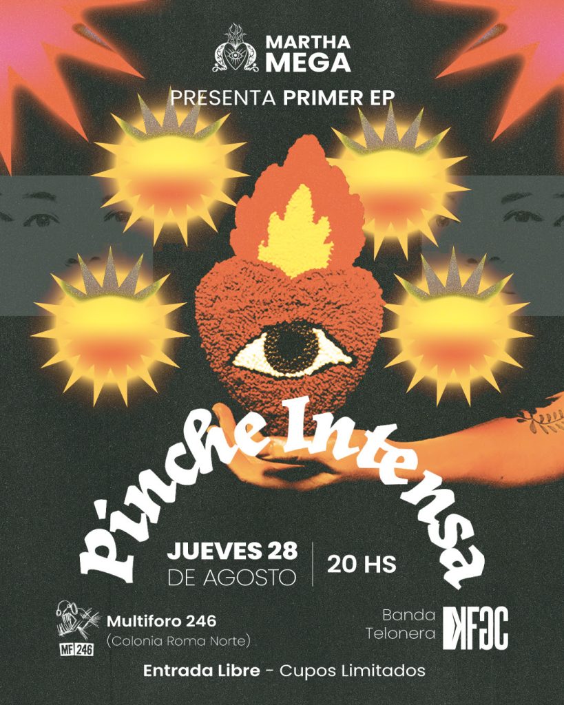 Luego de 2 sencillos (“La sentencia” y “Oye morra”) que muestran su versatilidad musical, la poeta y cantautora Martha Mega presenta su EP debut que lleva por título Pinche Intensa, que estará disponible a partir del 28 de agosto en plataformas de streaming como Spotify, YouTube, Amazon Music, Apple Music, Deezer, iHeartRadio, Tidal, Claro Música y Trebel, entre otras.
