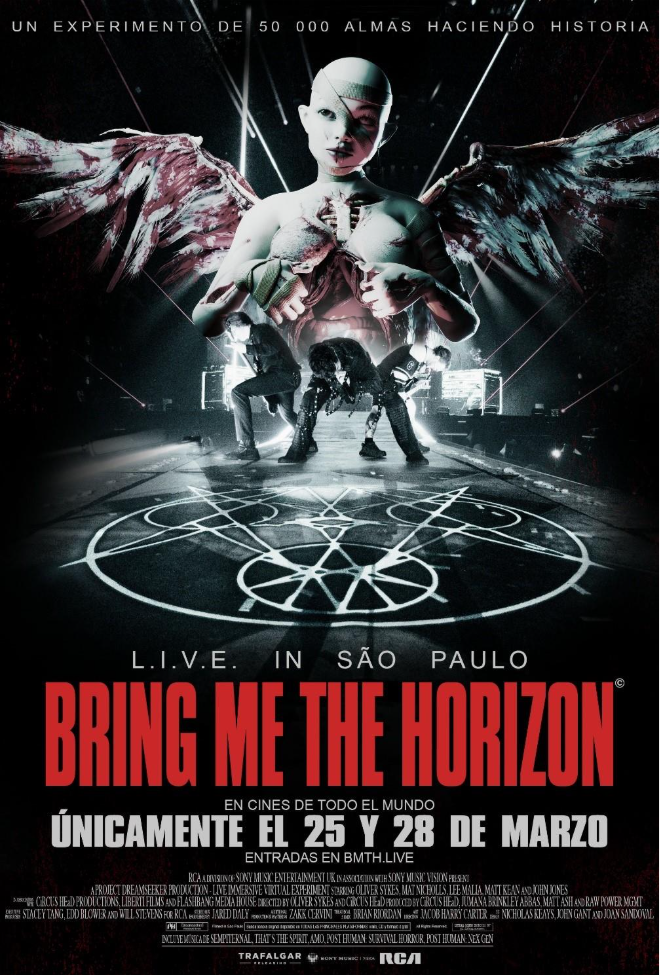 Cinépolis +QUE CINE y Trafalgar Releasings presentan el estreno de Bring Me The Horizon: L.I.V.E. en São Paulo (Live Immersive Virtual Experiment), un evento cinematográfico que captura el show más grande como headliners en la carrera de la banda británica ganadora del BRIT Award y nominada al Grammy. Esta experiencia llegará a la pantalla grande únicamente los días 25 y 28 de marzo de 2026.