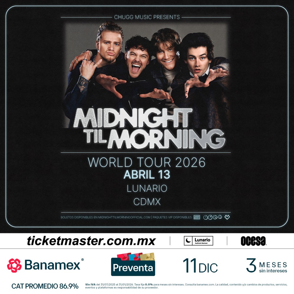 Midnight Til Morning aterrizará por primera vez en el país con un show que busca capturar todo aquello que los ha hecho virales: la estética minimalista, los contrastes de luz y sombra, y esa mezcla emocional que viaja entre lo vulnerable y lo contemplativo. Será una oportunidad única para ver cómo una agrupación nacida en el ecosistema digital se convierte en un acto capaz de llenar una sala, conectar en vivo y reconfigurar su propio sonido.